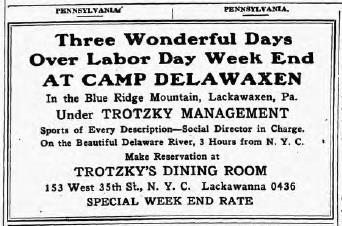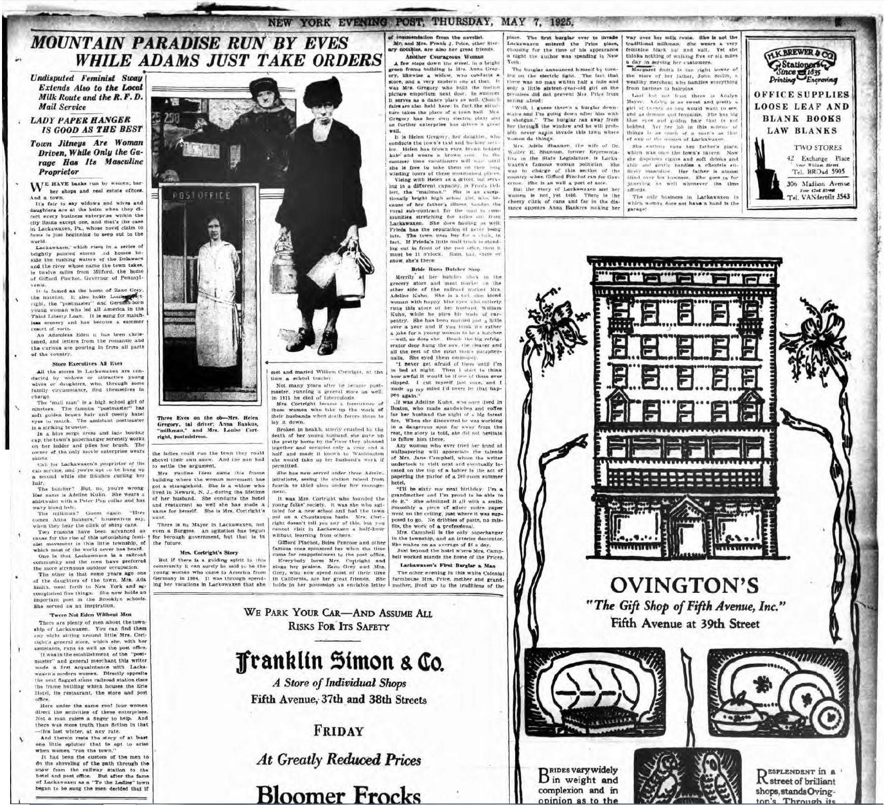 About the same time that the Trotzskys were incorporating Camp Delawaxen, The NY Post published an article lampooning Lackawaxen Village for being run by women. By today’s standards the Post crosses a line or two but perhaps in 1925, the Roaring Twenties, when women asserted their independence, their readers found the article humorous.