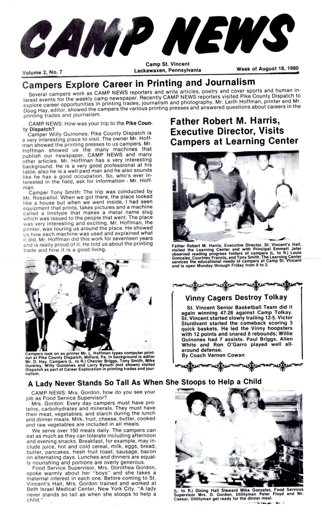 Camp St. Vincent’s Camp Delanore Delawaxen was replaced by the Camp St. Vincent’s run by St. Vincent’s Hall in Brooklyn, NY. This camp was a summer getaway for the orphanage in Brooklyn. Camp News 2 Camp news 6 Camp news 5 Camp news 1 Camp news 3 Camp news 4