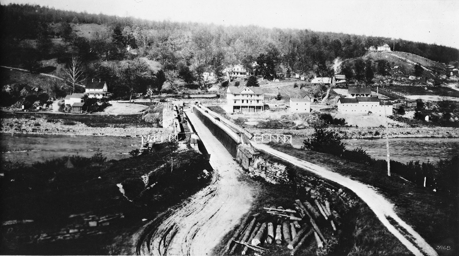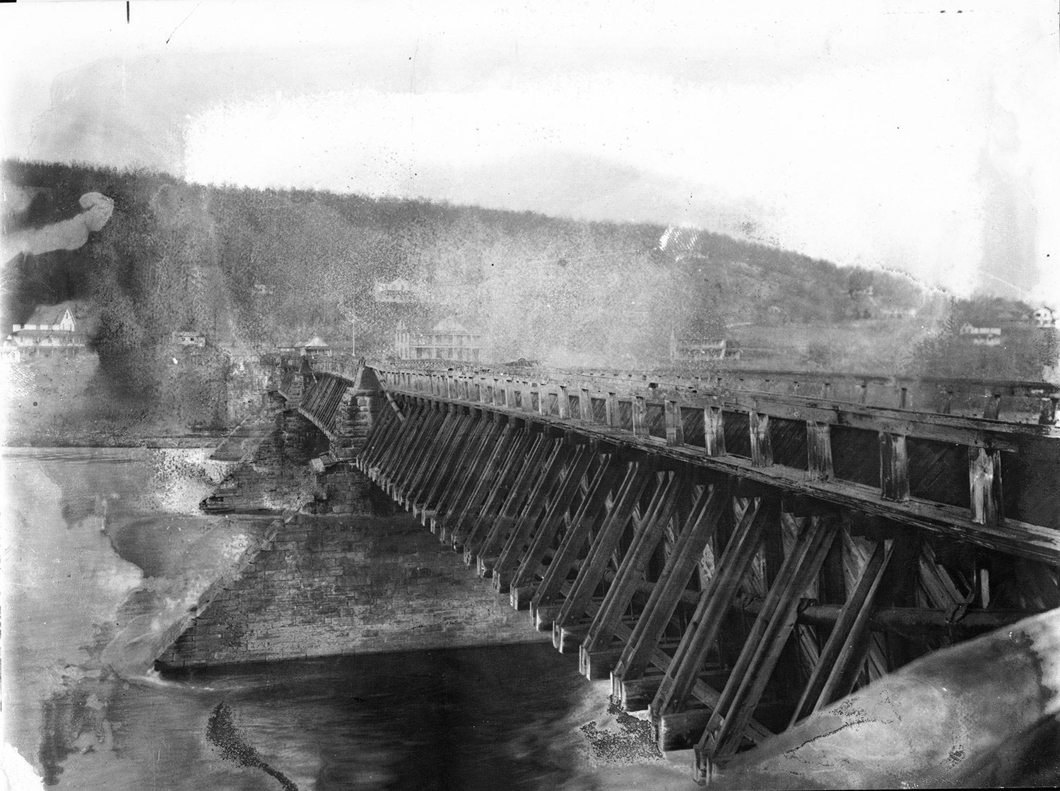 The aqueduct operated for fifty years until the closing of the canal in 1898. It was then converted to a private toll bridge and underwent a series of modifications through the years. About 1900, new owner Charles Spruks built a tollhouse abutting the New York side of the structure.